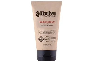 If reef-safe sunscreen is a priority for you, Thrive Bodyshield SPF 50 is an excellent option. Formulated with non-nano zinc oxide (23.5%), it offers effective protection while minimizing harm to marine life. This lotion is easier to rub in than many other physical sunscreens, leaving a minimal white cast on the skin. However, it is important to note that Thrive Bodyshield SPF 50 comes at a higher price point and has a strong added fragrance.